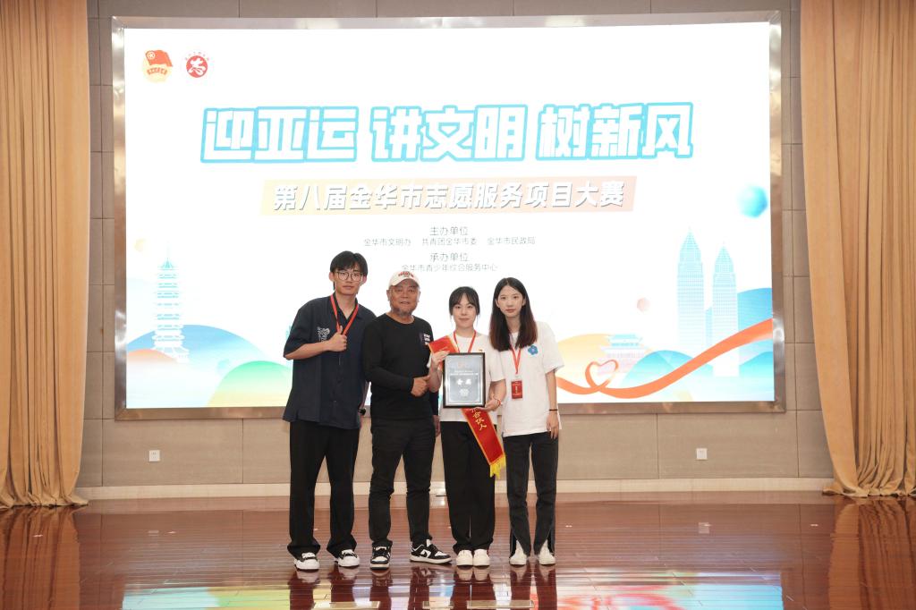 7月5日,由金华市文明办、共青团金华市委、金华市民政局主办的第八届金华市“迎亚运 讲文明 树新风”志愿服务项目大赛决赛在金华市文化中心举行,我院外语系“译播中国红色文化双语志愿服务项目”表现优异,再获金奖。