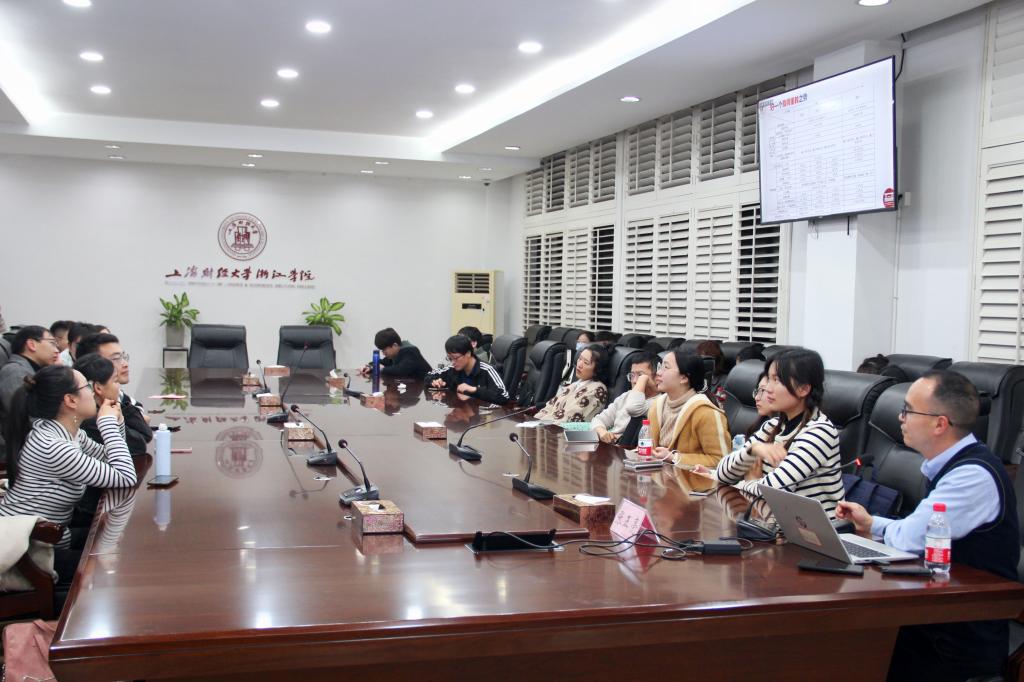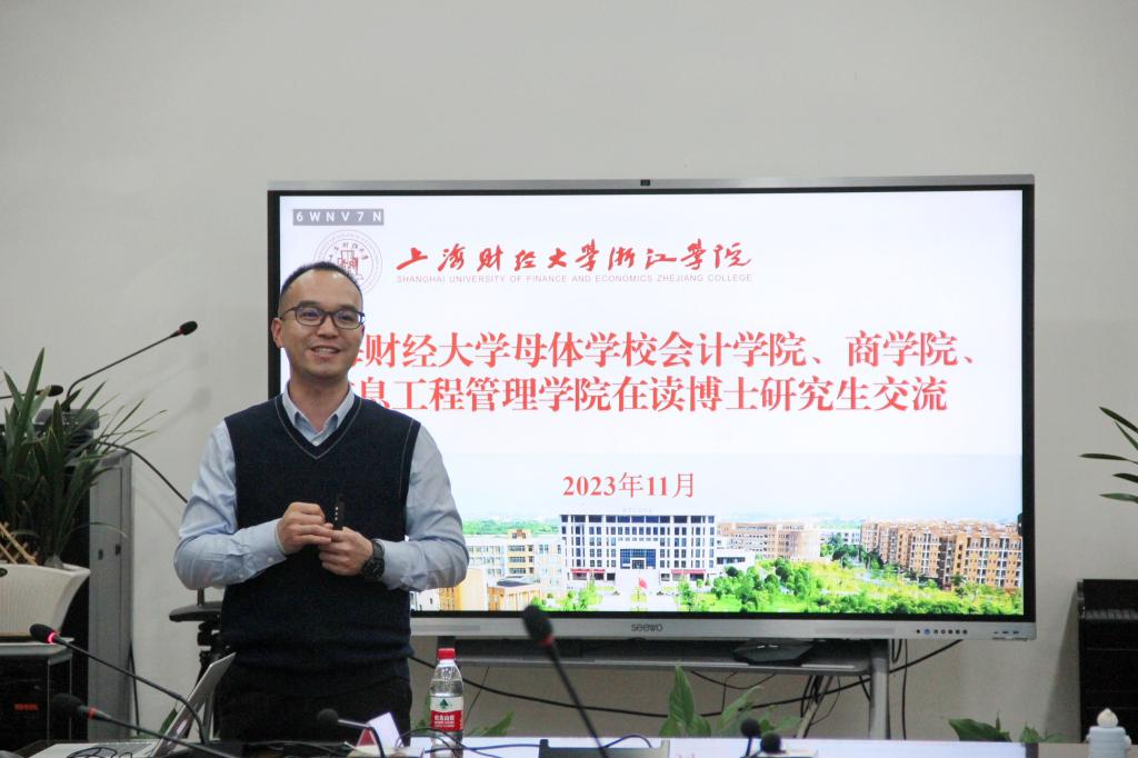 张正亮从金华城市发展,学校未来成长空间,母体学校的各项支持和薪资待遇等方面向在读博士生们推荐了上财浙院,并对在读博士们关心的问题作出了回答。就业交流会氛围热烈,互动频繁,在上海财经大学在读博士心中埋下一颗财浙的种子,静待未来发芽并开花结果。