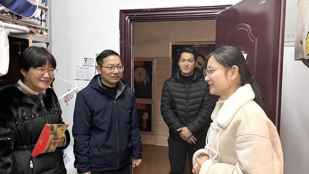 假期将至,学院纪委书记陈平深入寝室看望慰问学生代表,表达对同学们的关心与问候,向同学们送上新年祝福。会计系党总支副书记许海亚和相关辅导员等一同参加了慰问。