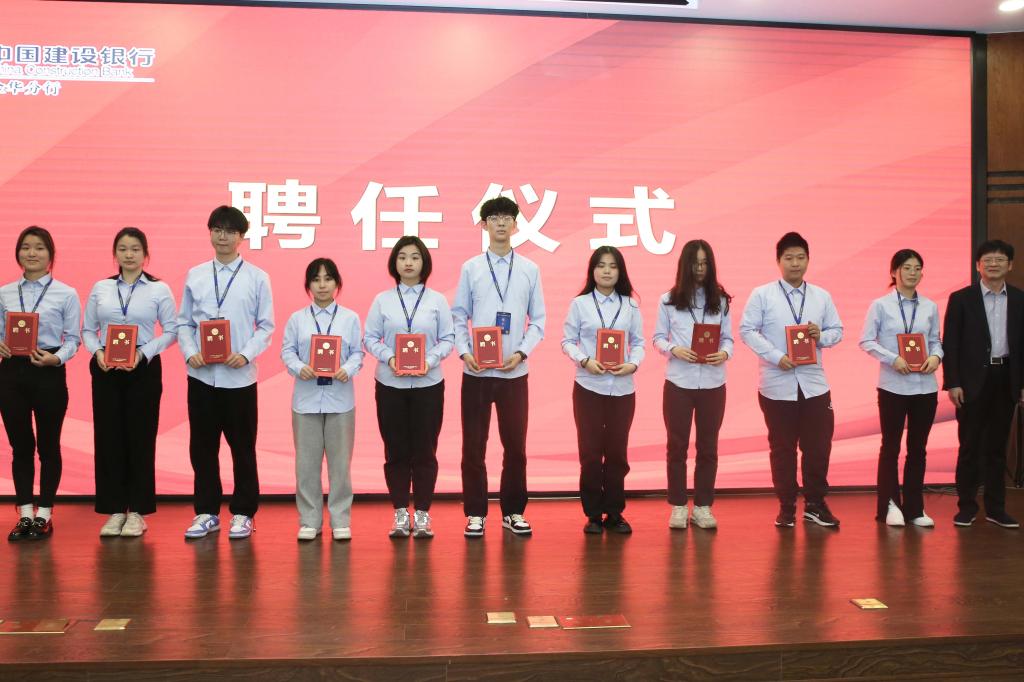 邱风在聘任仪式上致辞。他首先感谢中国建设银行金华分行对学院人才培养工作的大力支持,对各位行员的成功应聘表示祝贺。邱风对新一届行员们寄予了厚望,提出了三点要求:一是要学会主动探索、激发创造;二是要善于思考洞察、协作沟通;三是要坚持砥砺奋斗、勇于实践。卢根喜发表讲话。他对新行员的加入表示由衷的祝贺,并勉励行员们要坚定理想信念,勇担时代责任,锻造过硬本领。把自己融入校园e金服经营发展中,实现自身与校园e金服的共同成长。校园e金服第四届行长熊敏发言,她表示将珍惜宝贵的学习机会,与行员们共同努力、互帮互助,加强学习、厚积薄发,不断成长成才。卢根喜为各位行员颁发聘书和行员证。