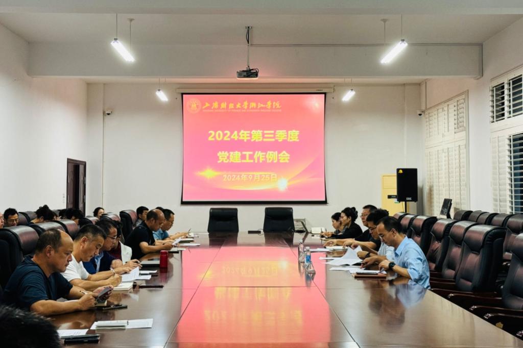 9月25日晚上,学院在28幢308会议室召开2024年第三季度党建工作例会。党委副书记何志强出席会议并讲话。各党总支(直属党支部)书记、副书记,全体教工党支部书记,专职组织员参加会议,会议由党委委员、组织部部长张正亮主持。