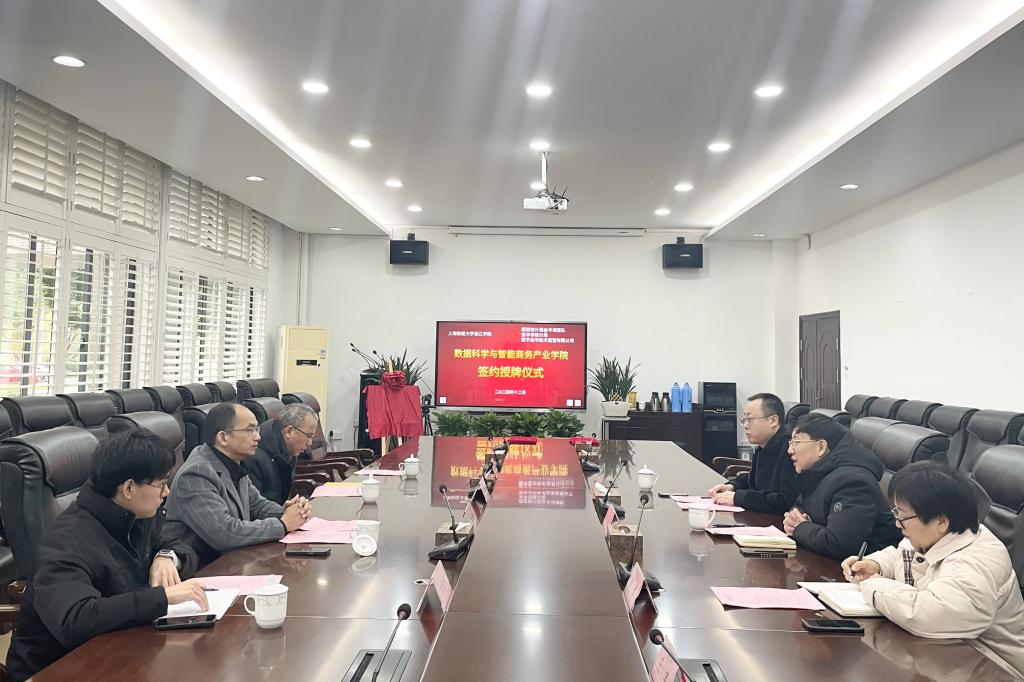 12月13日上午,学院在28-108会议室举行数据科学与智能商务产业学院签约授牌仪式。国家统计局金华调查队党组成员、副队长张国民,数字金华技术运营有限公司董事长黄新建和项目实施负责人方旭东,学院副院长邱风、实践教学中心主任、校企合作处负责人朱艳和统计系副主任武斌参加此次仪式。