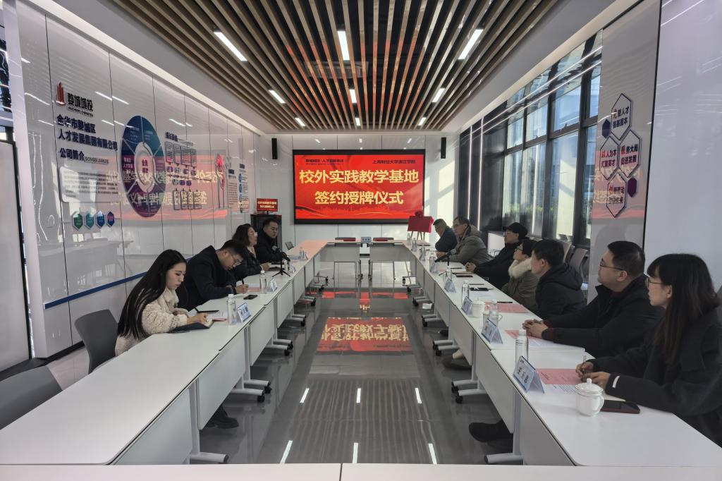 1月14日,学院与金华市婺城区人才发展集团有限公司举行校外实践教学基地签约授牌仪式。婺城区人才发展集团执行副总经理查晓雯率队出席,学院副院长邱风、实践教学中心主任朱艳、创业学院副院长池水明、工商管理系副主任熊璞、创业管理教研室负责人王正及系部教师代表共同参与了此次签约的仪式 。