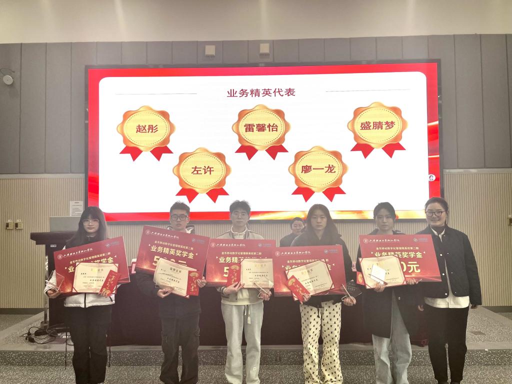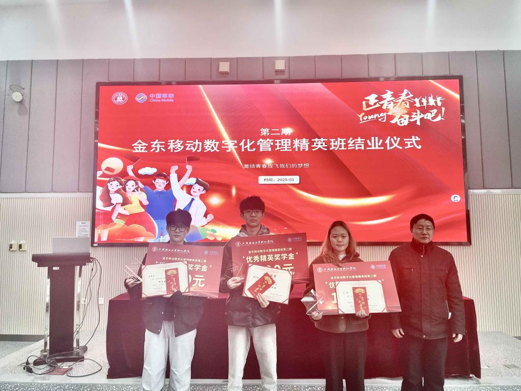 结业典礼上,首先进行了金东移动数字化管理精英班开办历程回顾。在校企双方共同推进下,第二期精英班于2024年3月20日正式开班。在一年的联合培养中,精英班共开展了8次特色理论课程、8次岗位实践、3次社会公益服务和4次外拓活动。让学生在理论与实战中深入理解数字化前沿知识,掌握数字化管理技能,培养创新思维、团队合作精神和社会责任意识。