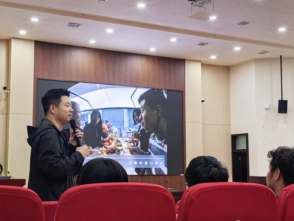 当晚,人民日报《环球人物》专栏摄影记者王剑波以“人间万卷书,行路知风物”为题,在行政楼报告厅带来一场视听盛宴。他结合多年环球旅行经历,借助镜头讲述了大千世界、不同国家与地区的异域人文风貌,并引导学生思考“如何用现代技术传播传统文化”。互动环节中,学生踊跃提问,就“如何通过书籍构建世界观”、“旅行对职业规划的影响”等话题展开热烈讨论,现场气氛热烈有序。