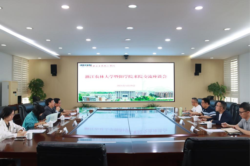 5月29日上午,浙江农林大学暨阳学院副院长金松恒、科研部主任杨洁一行四人到访我院调研交流。学院副院长邱风出席,科研处处长何其祥、副处长姜艳艳以及科研处相关人员陪同调研并座谈。